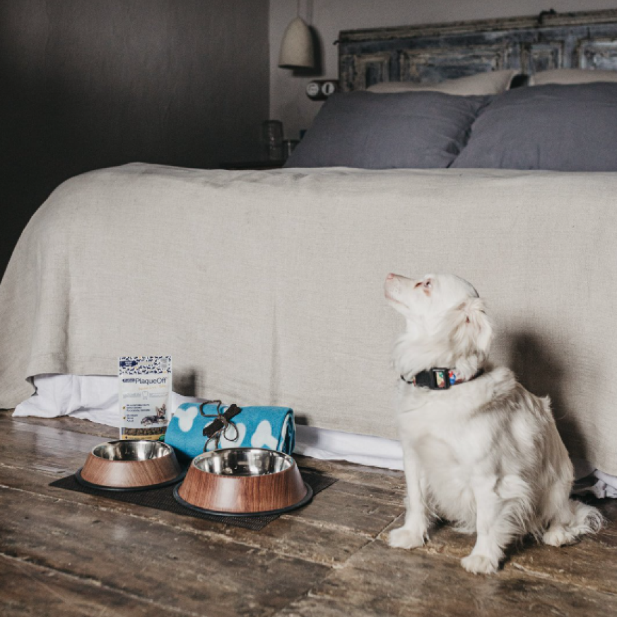 Les mascotes han de formar part de l’experiència completa, per això estan permeses a les zones comunes i durant els àpats, pero sempre lligats.