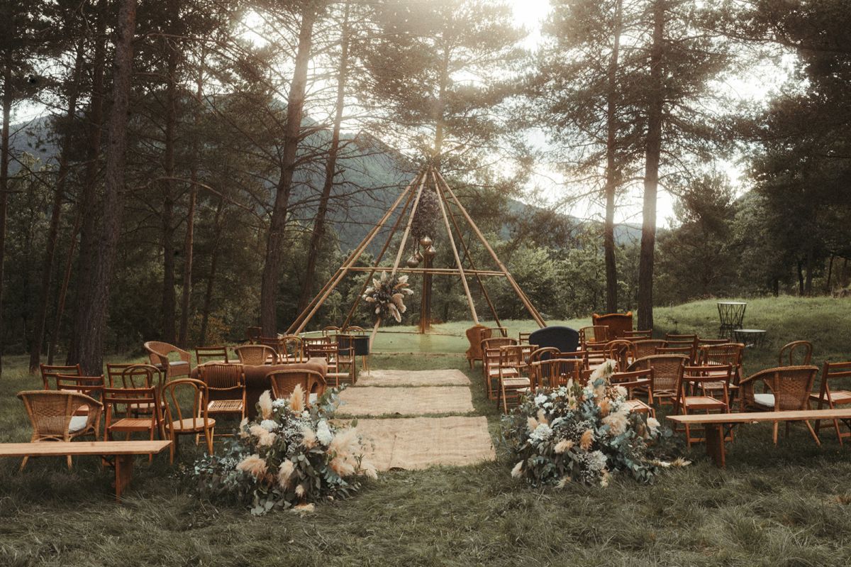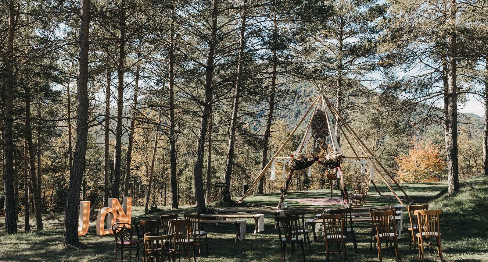 Tanca els ulls i imagina el moment. El sol filtrant-se entre els arbres, l’aire suau de la muntanya, el murmuri emocionat dels teus convidats i, just al teu davant, la persona amb qui vols compartir-ho tot.