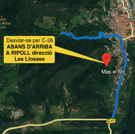 📌 Et recomanem desviar-te per la carretera C-26 direcció Les Llosses, just abans d’arribar a Ripoll.